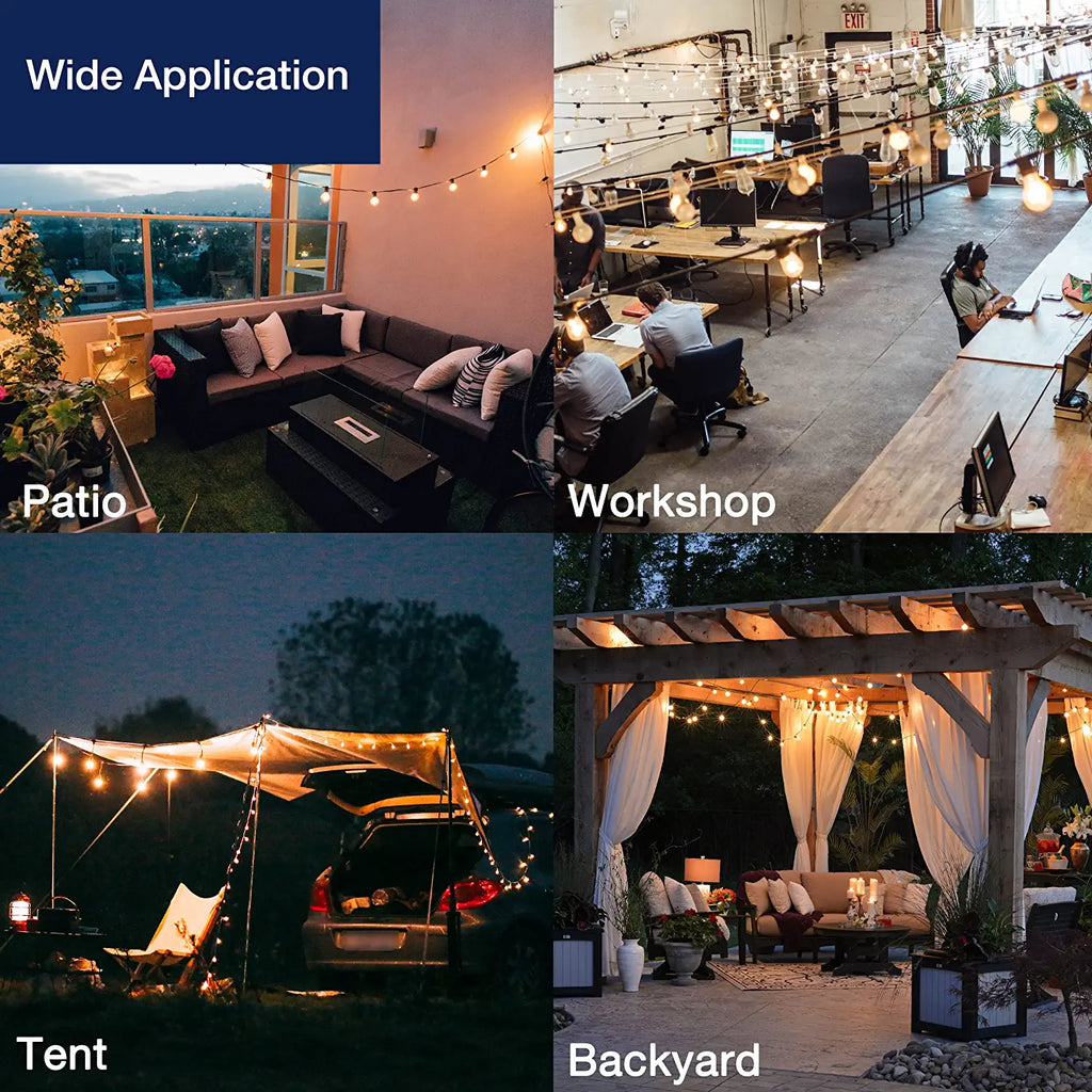 High-quality solid plastic material instead of glass can solve the problem of fragile and fragile glass bulbs.The all-weather string lights are designed to withstand hail, snow, wind, rain, and sun.